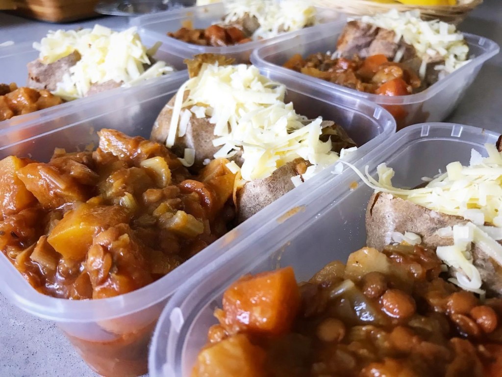 We have been serving food that is easy to eat from a takeaway foil dish such as casseroles, pasta dishes, sausage and mash etc always including meat, carbohydrates and vegetables. I have to be aware of costs whilst providing nutritious meals and have learnt to be flexible always making good use of donations. So if, for example, vegetables are donated I would use them as soon as possible as the main veg for the meal or if not enough I would use them to fill out a Bolognese or in a casserole, in a sauce or freeze them. We have also catered for vegetarian take away dinners. The takeaway bag consists of a sandwich, drink, crisps and sweet treat.